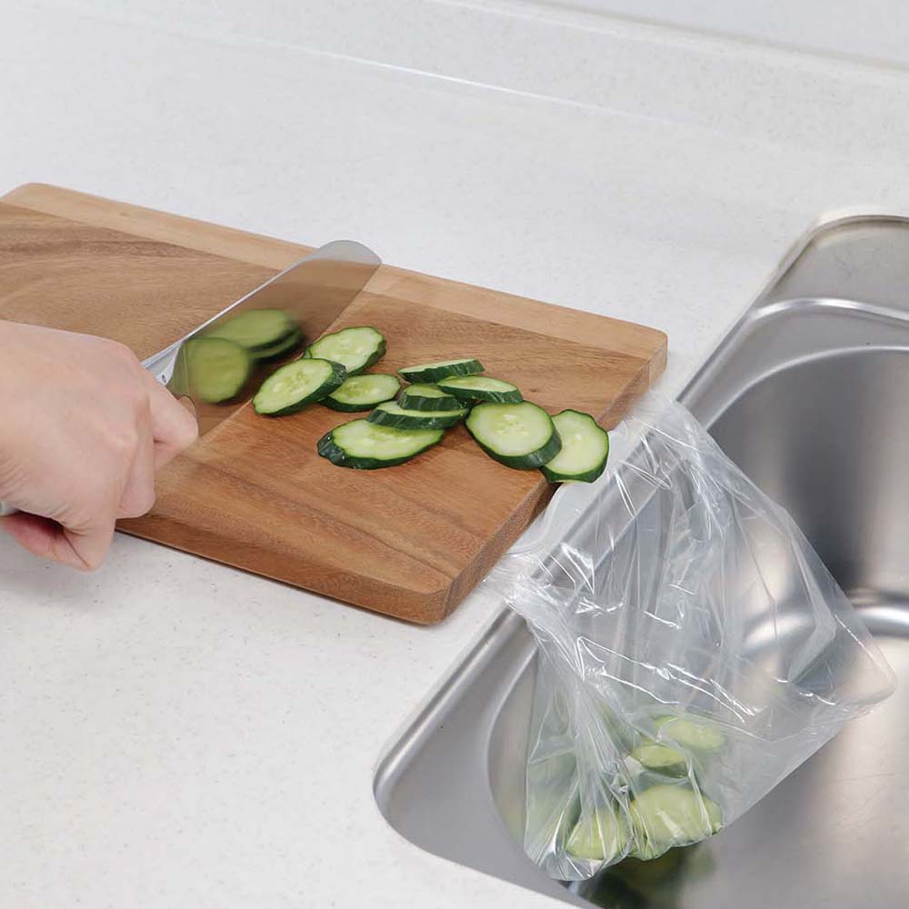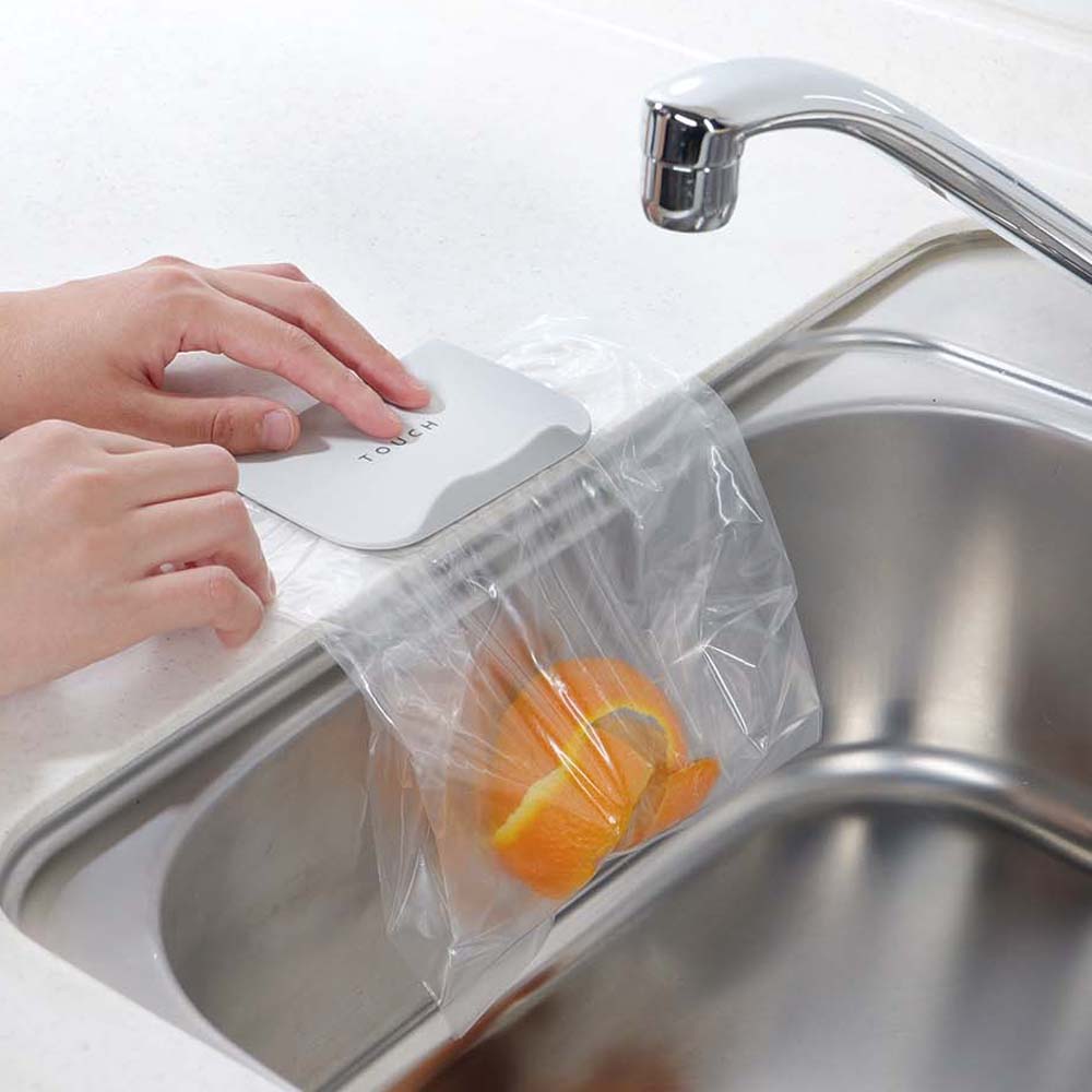 ポリ袋をはさむだけで簡単ごみうけ、三角コーナー代わりに。