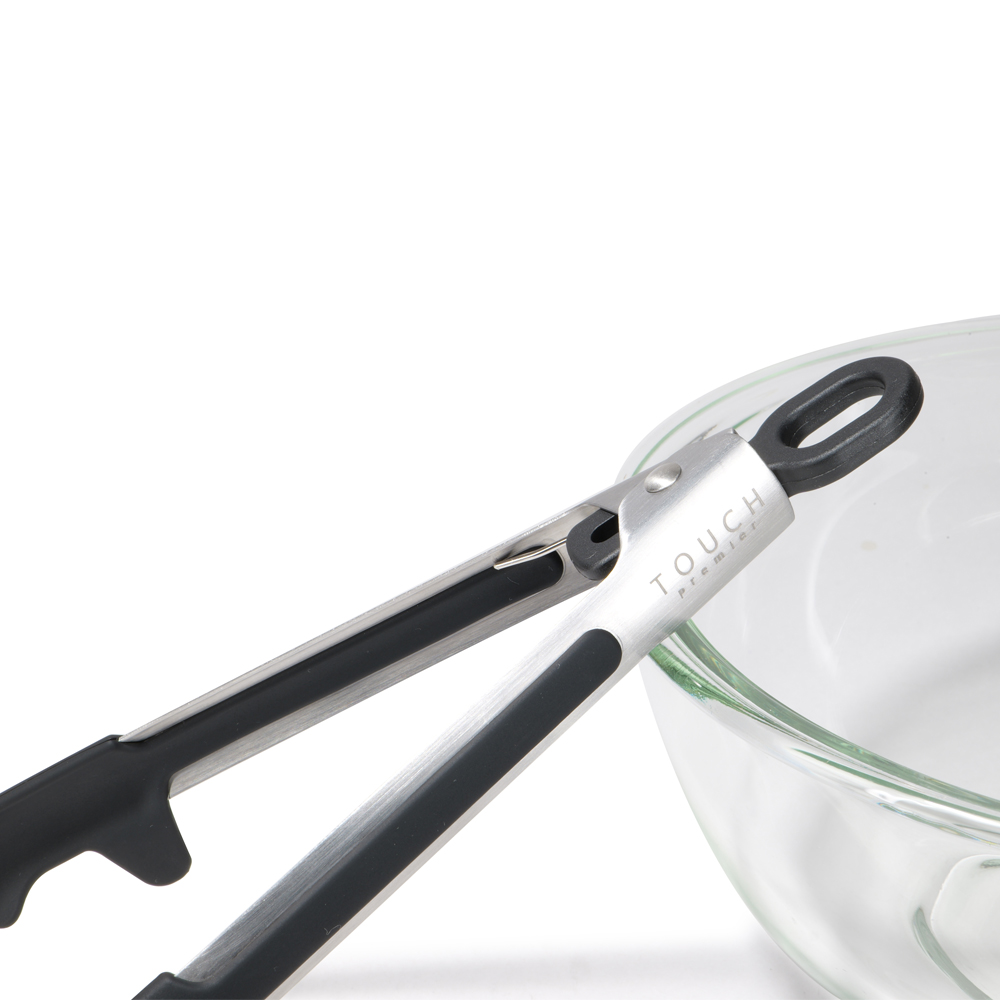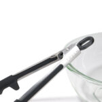 収納に便利なロック機能&吊り下げリング 後部のリングを押すだけでトングが閉じた状態でロックされるため、引き出しの中でもかさばらずに収納できます。リングを使って吊り下げ収納も可能です。